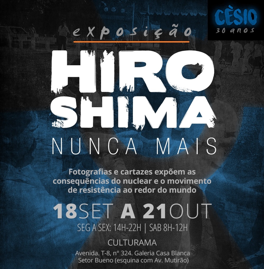 A exposição fotográfica Hiroshima Nunca Mais já passou por Angra dos Reis (RJ) e São Paulo (SP), mostrando as contradições e o enfrentamento o nuclear no mundo todo. Em Goiânia (GO), as imagens de fotógrafos de diversas nacionalidades poderão ser vistas de 18/09 a 21/10/2017, no Espaço Culturama ( Avenida T-8, n. 234, Setor Bueno). A entrada é franca.