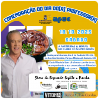 Neste sábado (18/10), a partir das 11 horas, a Apuc e o Sinpro Goiás convidam para uma feijoada especial no Clube do Sinpro Goiás (Saída para Inhumas, Km 6 da Rodovia GO-070, na Rua São Geraldo, Parque Maracanã, Goiânia-GO).